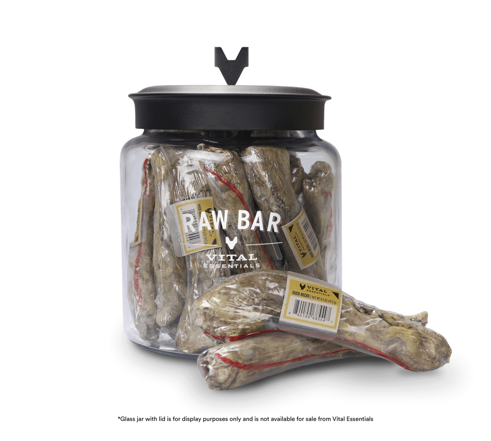 Duck necks are the perfect chewy treat to help clean gums and provide unique texture stimulation between meals. Treat your dog to butcher cut raw protein for a snack that builds strong muscles for more play, naturally supports digestive and oral health, and provides essential nutrients to support your dogs vitality. NOTE: Glass jar with lid is for display purposes only and is not available for sale from Vital Essentials