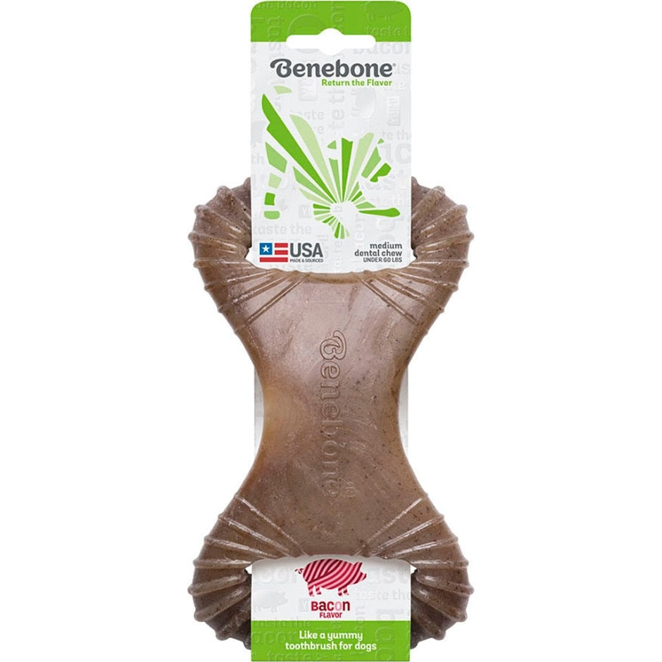 Not only is the Dental Chew a durable flavor-packed chew, it also makes for a great tug toy. What could be better than a bacon-flavored toothbrush?