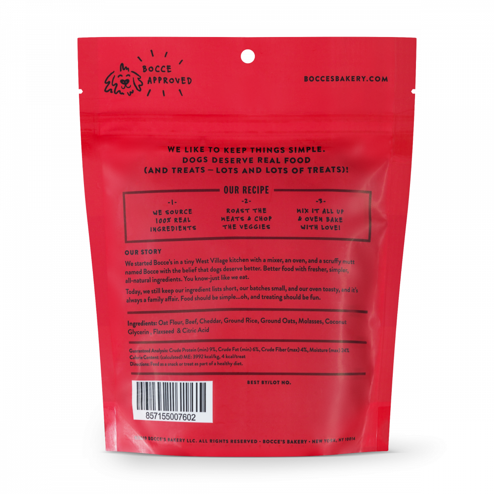Bocce is a 5 year old mutt with one scruffy hairdo and a tail that won’t stop wagging! At a doctor’s checkup, Bocce’s was told that he was carrying a few extra pounds. Oh my! So I started looking into what he was eating. I was shocked with the amount of preservatives, and ingredients that I had never heard of in his food ...and treats. We decided to make a change. I combined my love of cooking using organic, seasonal ingredients, with Bocce’s love of biscuits. And Bocce’s Bakery was born! We’ve come up with all-natural biscuits, in delectable flavors, all doggies are sure to love. Still baked by hand, in small batches, with the freshest ingredients we can find. We hope you enjoy our treats. Andrea & Bocce