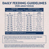 Amounts in the table are intended as guidelines only. Energy requirements vary with environmental conditions, temperature, age, and activity of your dog. The amount of food should always be adjusted to maintain ideal body condition. It is important for your dog's health to maintain proper body weight. Consult a veterinarian for specific weight recommendations. Keep fresh water available at all times. See your veterinarian regularly.