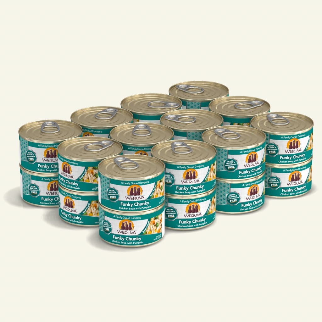 The funk, the whole funk, and nothing but the funk. Get funky with your kitty with Weruva's Funky Chunky Canned Cat Food. This wholesome food is a tasty chicken soup containing boneless, skinless, and cage-free chicken breast as well as carrots and peas, an age-old classic chicken soup formula. Weruva's chicken is also free of hormones and antibiotics. Weruva Funky Chunky Canned Cat Food is also free of any grains, GMOs, MSG, and carrageenan for a balanced meal in each can.
